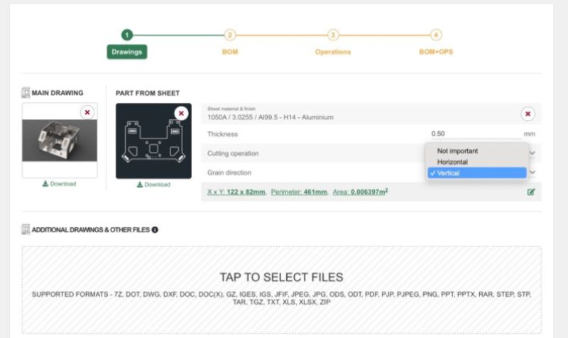 - In a situation when part drawing is not available it is now possible to upload .dxf as main drawing. This is automatically converted and used as both the main drawing document and a geometry for analysis and nesting.