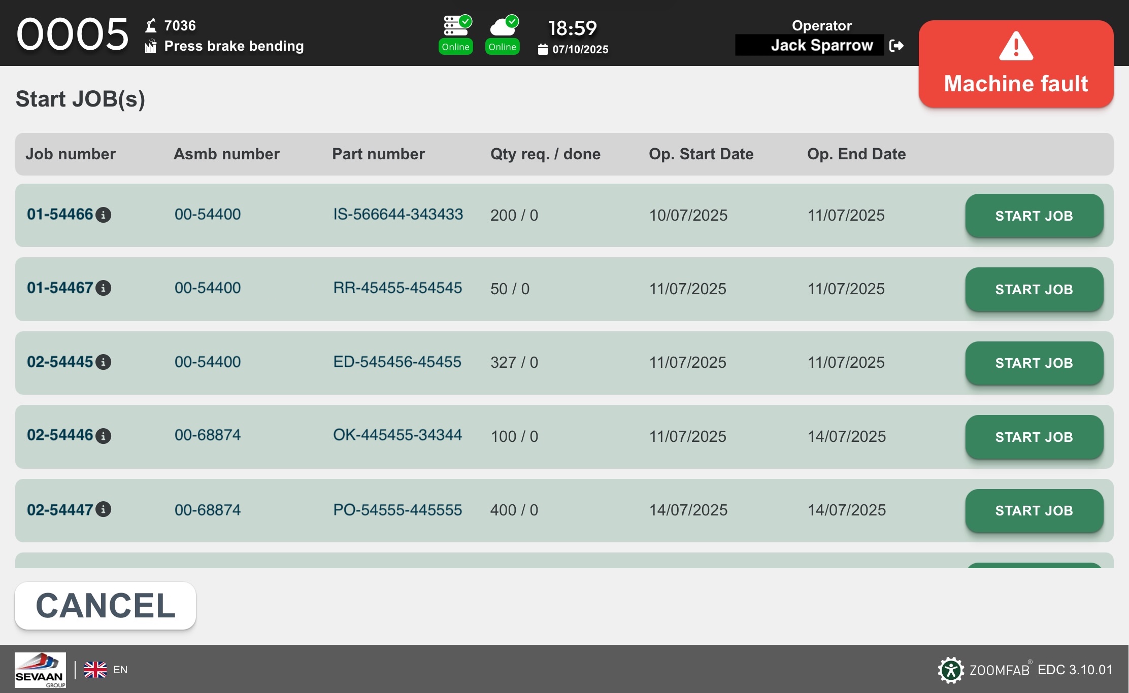 Umożliwia to terminalowi EDC3 pobranie listy zleceń dostępnych w systemie Epicor oraz wysyłanie danych dotyczących konfiguracji i postępu pracy dla każdego zlecenia. Operatorzy mogą wybierać i raportować swoją pracę bezpośrednio z terminala EDC3, bez potrzeby korzystania z ekranu MES systemu Epicor.